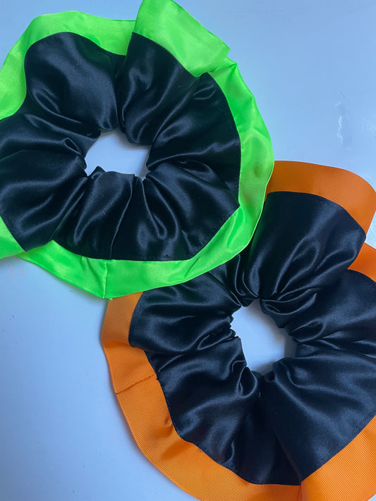 Giant Black Satin and Orange Ribbon Trim Scrunchie