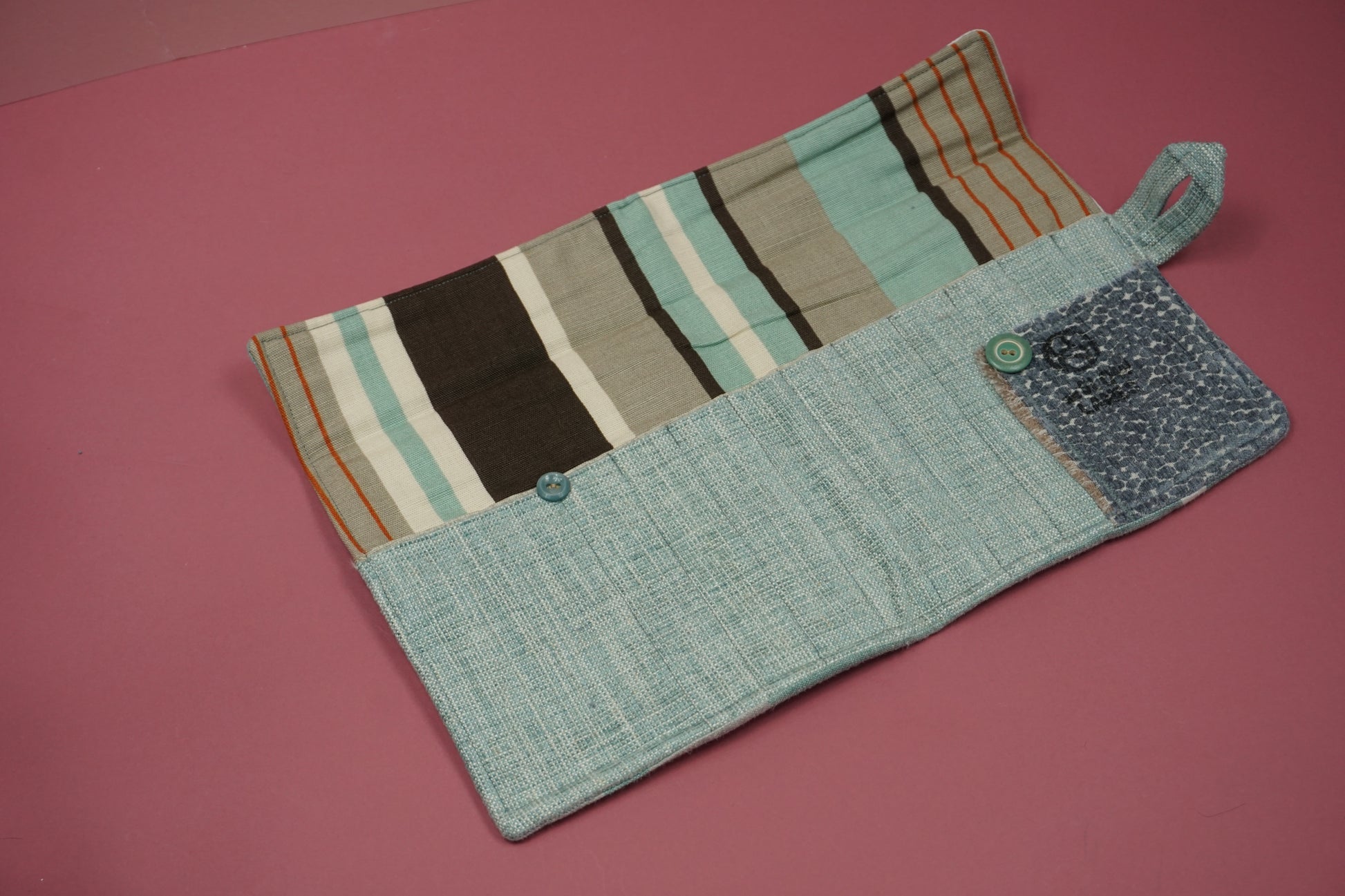 Green and Grey Linen Upcycled Crochet Case