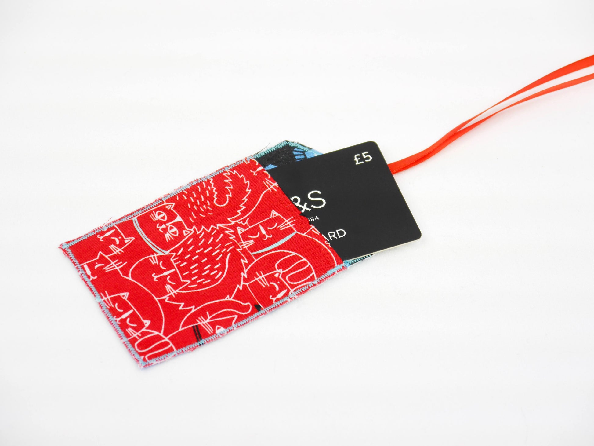 Upcycled Giftcard Holder - Cat & Star Print Fabric Gift Tag